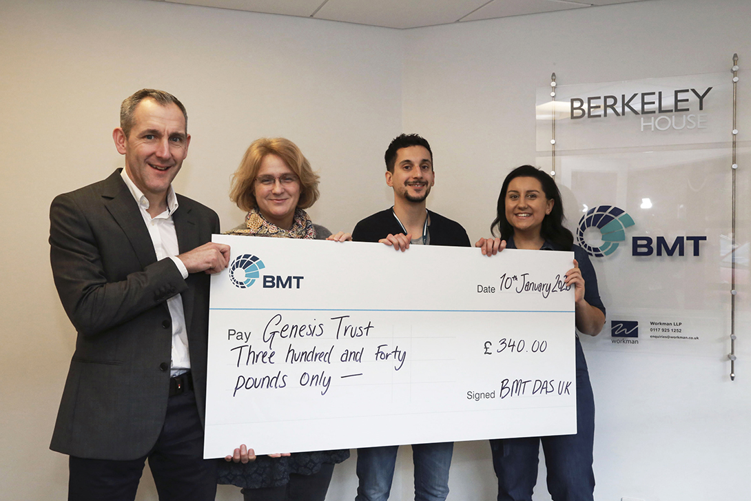 On Friday 10 January, a charity cheque was presented to Genesis Trust from BMT Defence and Security UK.
